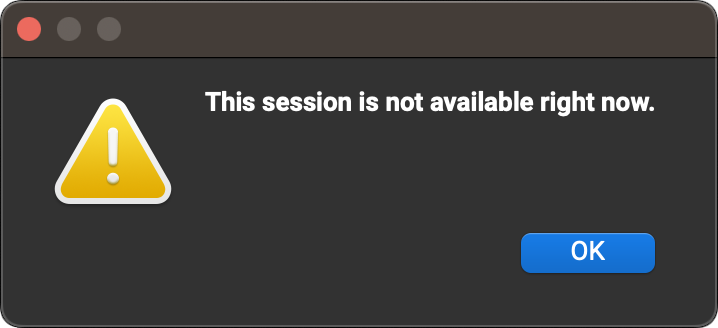 - To deny entry to the selected participant(s), click the Deny button. On their end, they’ll see a dialog box that reads, “This session is not available right now.”