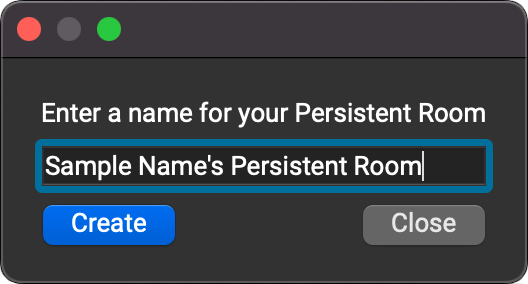 - You’ll be shown a possible name for your Persistent Room. Edit it, if you’d like. Then, press Create.