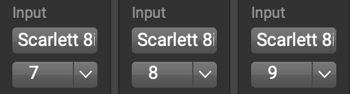 In the example below, I created one track each for input channels 7, 8, and 9 on my audio interface.