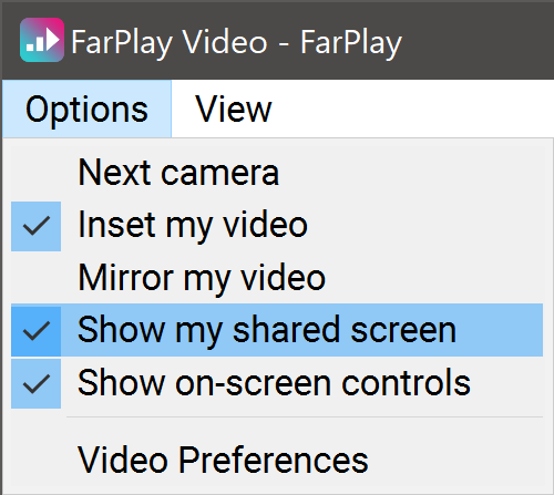 Thank you for your question. To check, when you “selected the proper option,” you clicked the camera icon in the FarPlay Video window and then looked for Share desktop screen at the bottom of the menu that appears, is that right?