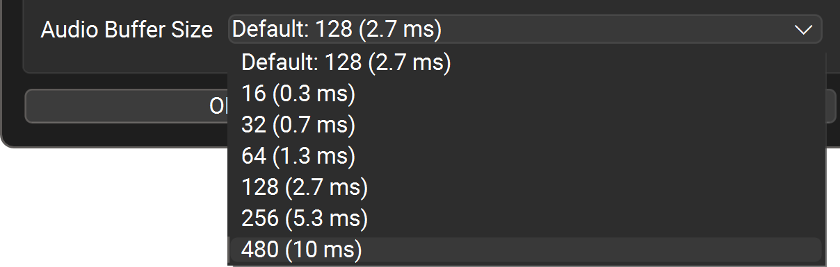 - Try raising the ASIO buffer size to 64 or 128 samples. (Get to your audio interface’s ASIO Buffer Size settings by going to FarPlay’s Preferences > General Options tab and clicking the ASIO Buffer Settings button, as illustrated in section 3. Configure and test your audio of our QuickStart instructions customized for you).