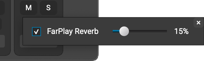 for a track to open the reverb controls for that track. Check the FarPlay Reverb checkbox to turn reverb on. Use the reverb slider to adjust the amount of reverb.